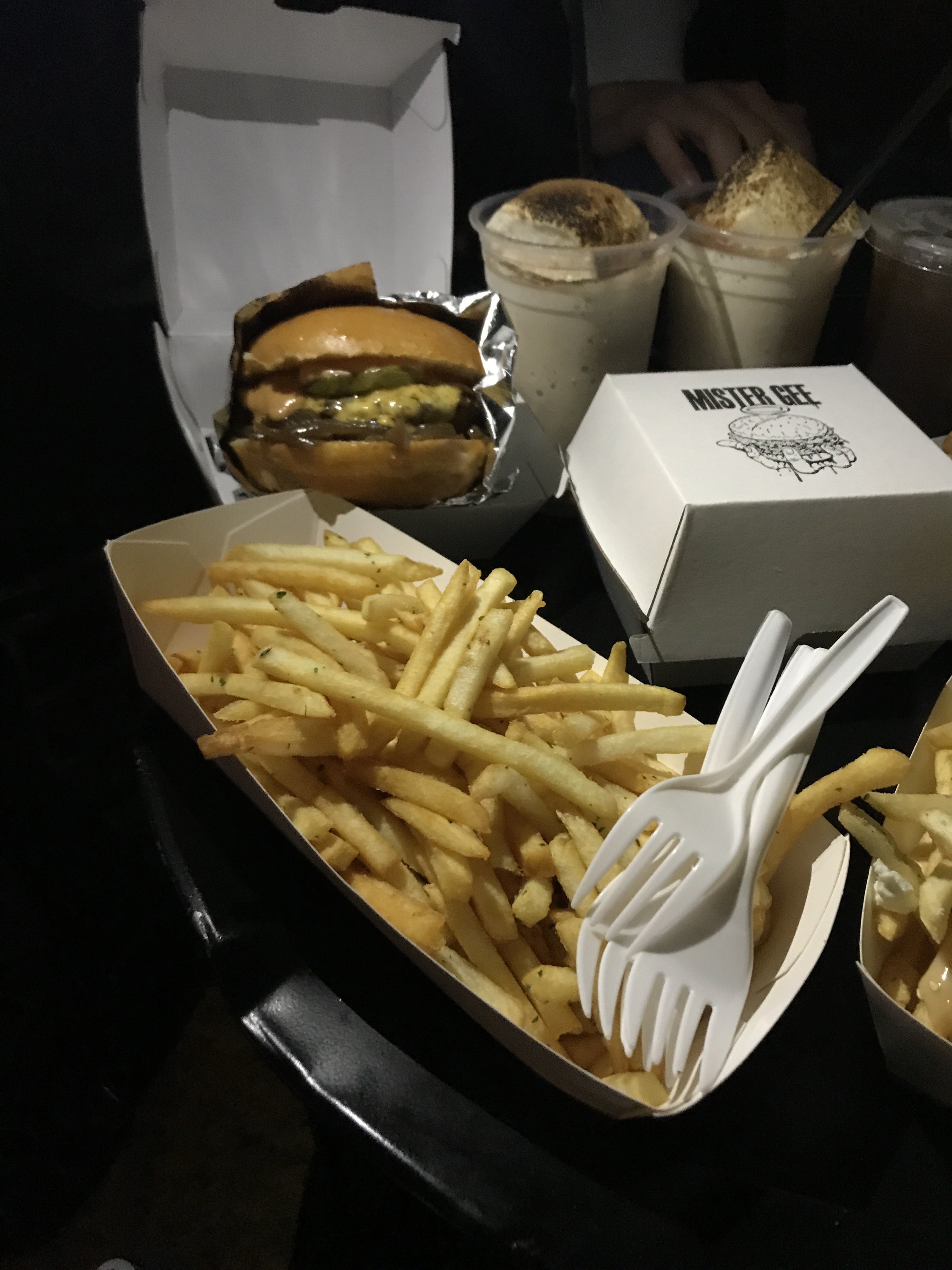 Like how I’m not a fan of Selena Gomez the singer-actress, I was similarly not impressed with the Mister Gee’s shake named after her. To describe the taste, it felt like I was eating a cinammon donut in one hand, while licking a Macca’s soft serve in the other – and for $7 a pop, it was not worth it. That’s all that needs to be said. Moving onto the sweet tea, wow that is a winner. A refreshing complement to the meal that washes down you’re mouth, the Gee’s T tasted homemade whilst not causing that quench for thirst like a Lipton iced tea would. I highly recommend choosing it over the shake, to go with your feast but drink it quick otherwise the ice dilutes the flavour. Along with the plain fries, the Gee’s T was my favourite from the menu.