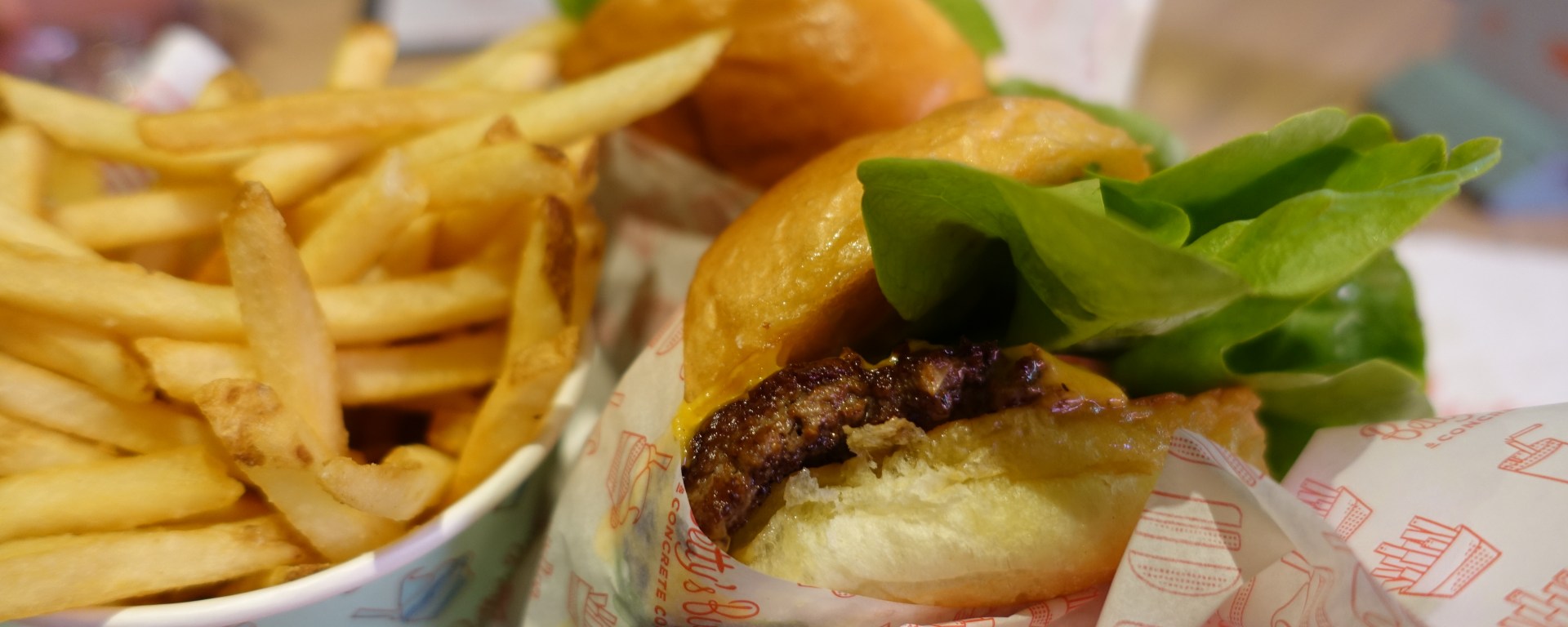 This week one third of Nerd Club hits up the Melbourne burger scene to bring you a review of Betty’s Burgers and Concrete Co. Modelled after the classic 50’s burger shack, the neon lights and red checkered tablecloths were certainly very inviting in the Melbourne winter. A defining feature of Betty’s Burgers was their range of desserts, called ‘Concretes’. Unfortunately, because of limited stomach capacity, I did not try out any of their desserts 😦