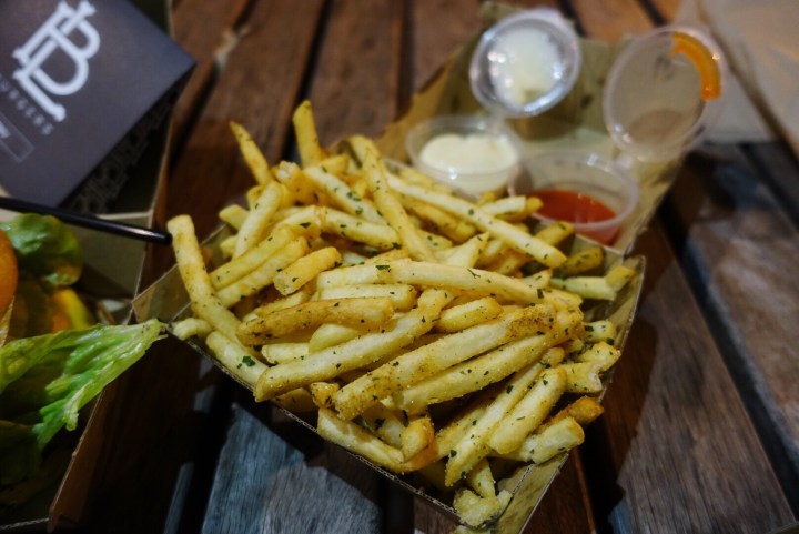 The modern fry is often heavily processed between coming out of the oil and entering the mouth. The regulars feature a fair dose of herbed seasoning which adds well to the crispness of the fries. The quest for the best loaded fries continues with this weekly special. Salt, sauces, a myriad of toppings in combinations unheard of before; all to create the ultimate fry experience. When the search will end, no one knows but to add to the literature of experimental fries, BL Burgers have done exceptionally well. With their addition of cooked kale, crunchy bacon chunks, fresh tomato and red onion and a light aioli atop of their already phenomenal fries, these definitely earn the title of LOADED. If a potato salad was deep-fried, it would turn out something like. They do well to lighten the taste buds and the help-yourself sauce selection is always a welcome addition.