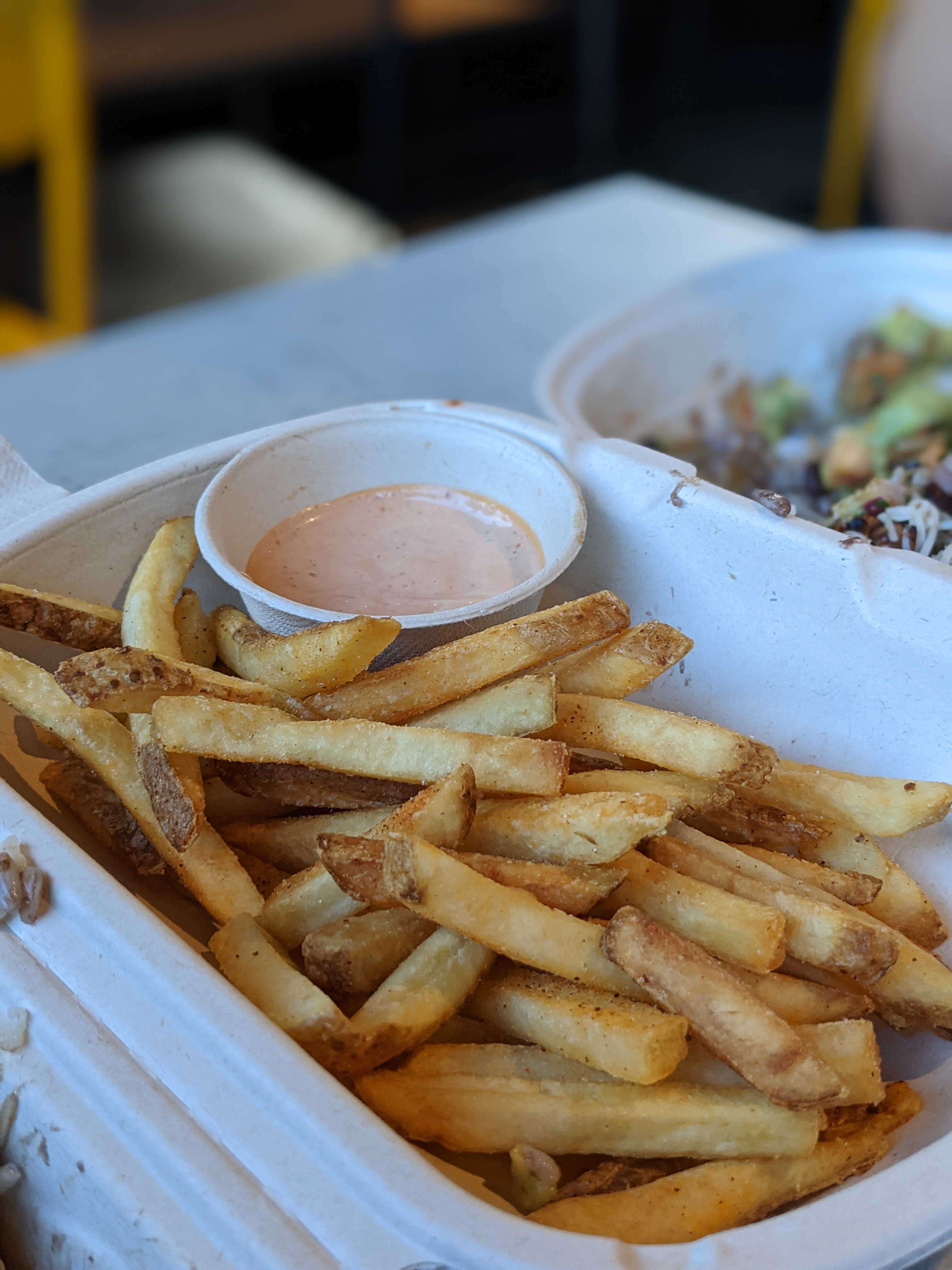 We also got fries on the side with their chipotle mayo sauce which I was hooked on. The sauce was soooo good, a bit of kick as expected and great texture for dipping chips in. Would recommend try their fries (carb overload) and getting the chipotle mayo sauce.