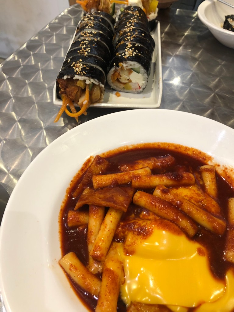 My personal favourite, and something unique to Basak (at least I haven’t seen it elsewhere), is their cream cheese kimbap. An unexpectedly delicious flavour pairing, the dense cream cheese is offset perfectly by the acidity of the pickled yellow radish. We also ordered the pork cutlet kimpbap and a side of spicy rice cakes (with added cheese). The rice cakes and were the perfect level of spiciness for me (I am notoriously bad with spice), with the sweetness and cheese offsetting the heat of the sauce.