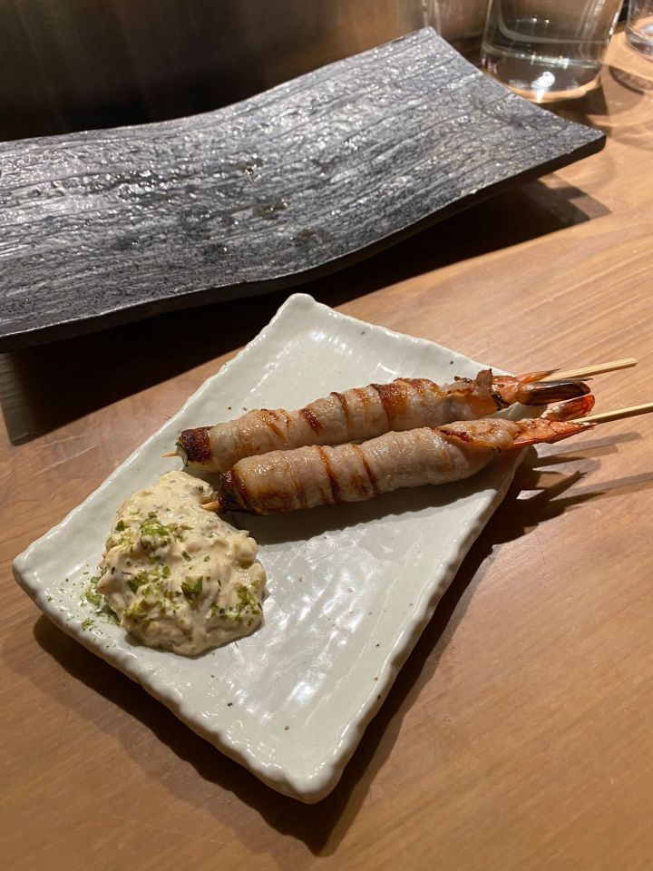 Onto some of Goryon-san’s specialties, the skewers. A chef’s selection of 5 skewers which featured Chicken, Sukiyaki, Asparagus, Shiitake Mushroom and Prawn. All the skewers were good, nothing amazing but very solid snack like items for eating while drinking, typical in izakyas. Stand outs here for me was the asparagus and prawn skewers both of which were wrapped in meat, I believe pork for both. But the asparagus was sweet, peppery and the meat added some saltiness. While the prawn was also well seasoned and had a sauce to go with it that tasted like a mini potato salad. Every skewer here was well seasoned and you can see the chef cook it right in front of you on the grill if you’re in the bar/omakase seating area.
