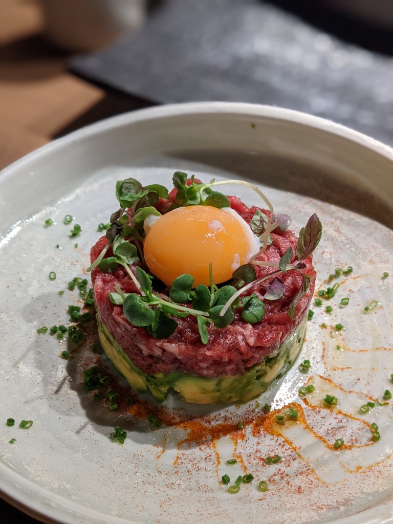 Price: $89 per person for set menu, wagyu tartar $29, drinks cost additional
