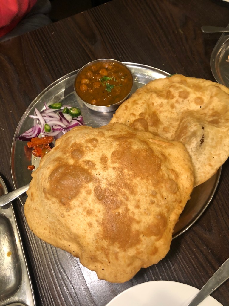 Chicken biryani was a spiced fried rice dish – this was again nothing special and I don’t think i’d order it again. The rice was definitely overshadowed by all the other delicious carbs on offer, from the garlic cheese naan to the puffed fried bread served in the channa bhatura. This was so good – spicy chickpea curry served with freshly fried puffed bread.