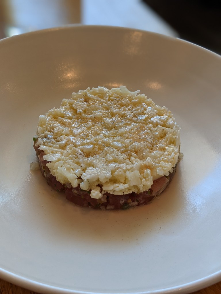 Often times these set menus start with bread so it’s important to set the tone for the rest of the meal, and boy did Cirrus deliver. The charcoal grilled bread was crisp on outside, fluffy on inside, but it was the whipped ricotta with crispy shallot and herb oil that really stood out. Despite a generous serving, we smashed through the dip which was a perfect combo with the bread giving it a light and creamy taste with a pesto-like blend from the herb oil.