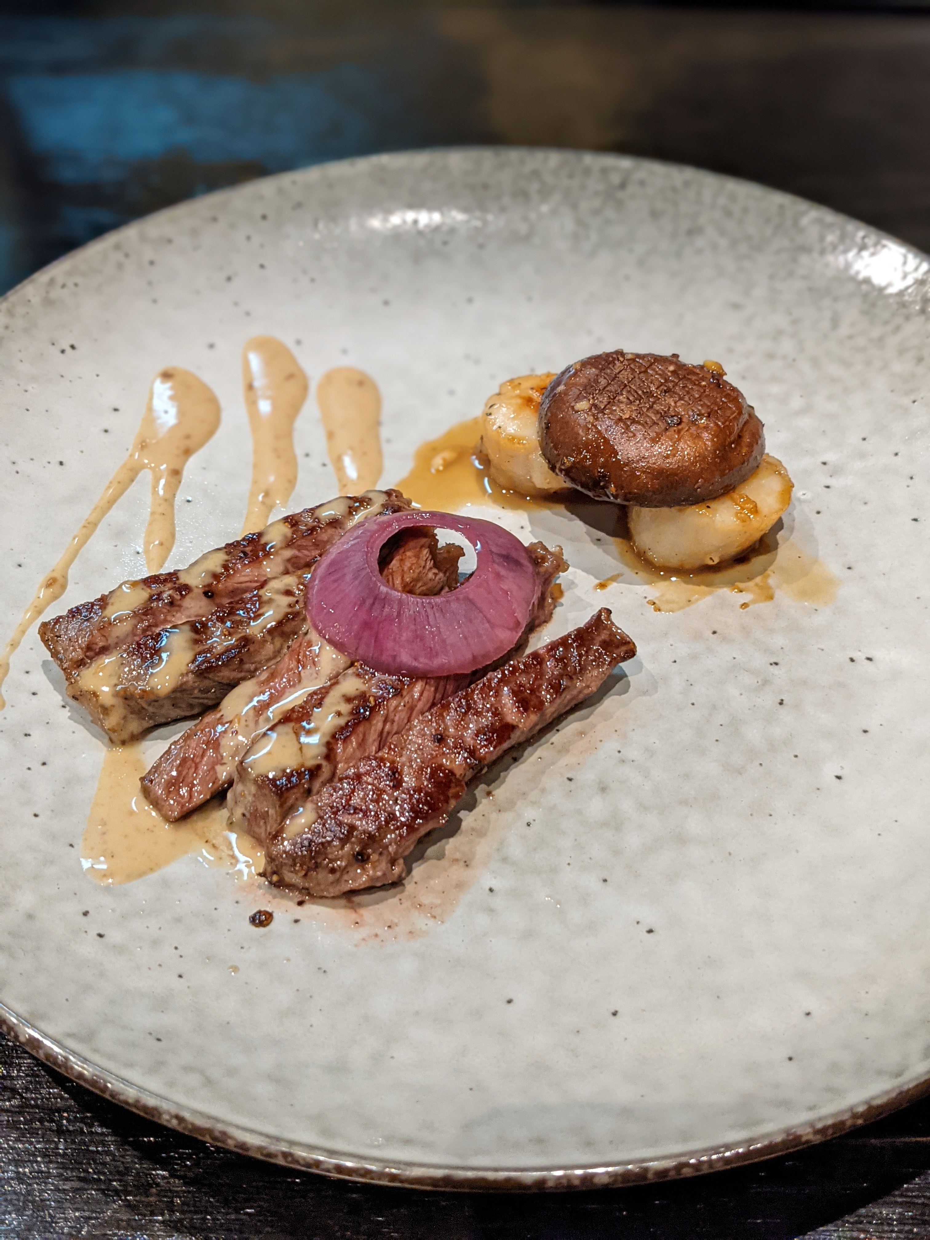 The final dish was Steak & Scallops, an enjoyable dish to end the meal. My steak and scallops were cooked well, however the scallops seemed inconsistent across others with some being slightly overcooked. This worked well with a miso mayo sauce that added some creaminess and although there was a mushroom, this could have worked with some more veg, potentially some greens would have elevated this dish.