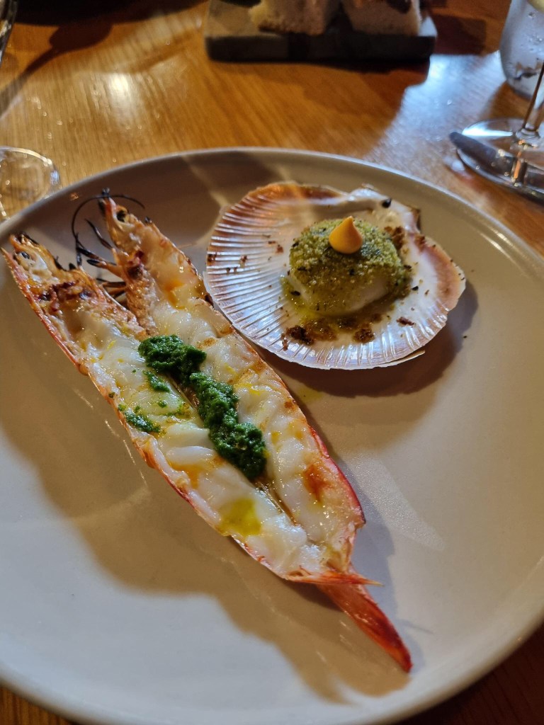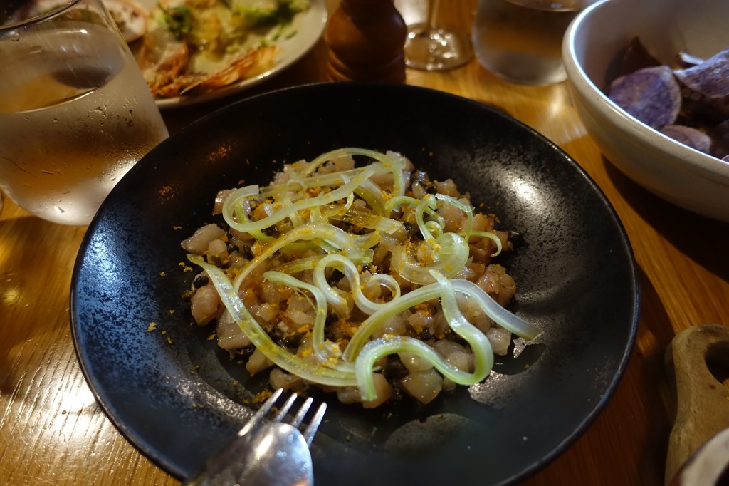For entrees we ordered the kingfish tartare, the fried octopus, burrata, the grilled king prawns and a scallop each.