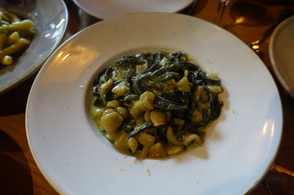 This pasta featured a pea sauce with cuttlefish and squid ink tagliolini. There was a hearty serving of cuttlefish but I found the pasta a bit too thick and heavy when combined with the thick pea sauce. Still delicious but lacking the flavour punch that the other two pastas before it had.