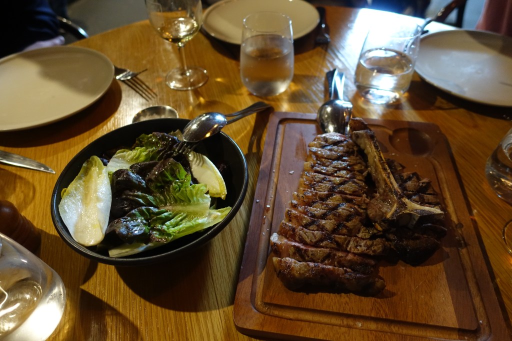 It was a nice gesture when restaurant insisted on giving us a leaf salad (complimentary) when serving the dish after noticing we had not ordered sides. It was nice and light, doused heavily with balsamic vinegar and olive oil and did help cleanse the palette between bites of medium rare steak.