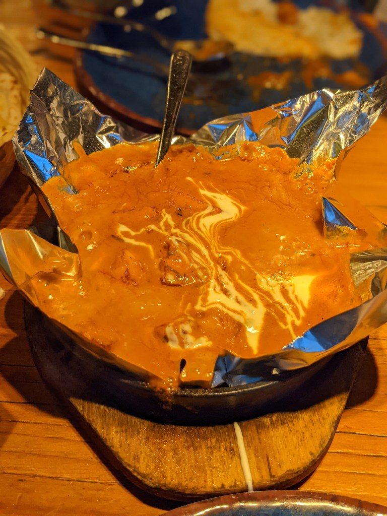 Onto the curries: all delicious and the meat element was replaced by cottage cheese which I loved. The butter masala was delicious and catered perfectly to my uneducated palette and the tikka masala had a healthy kick of spice. My overall favourite was the palak paneer which was done a bit differently from Billus with the spinach not blended completely into the curry, leaving a nice textural element. The garlic and butter naan we ordered were also the perfect vessels to go with the curries.