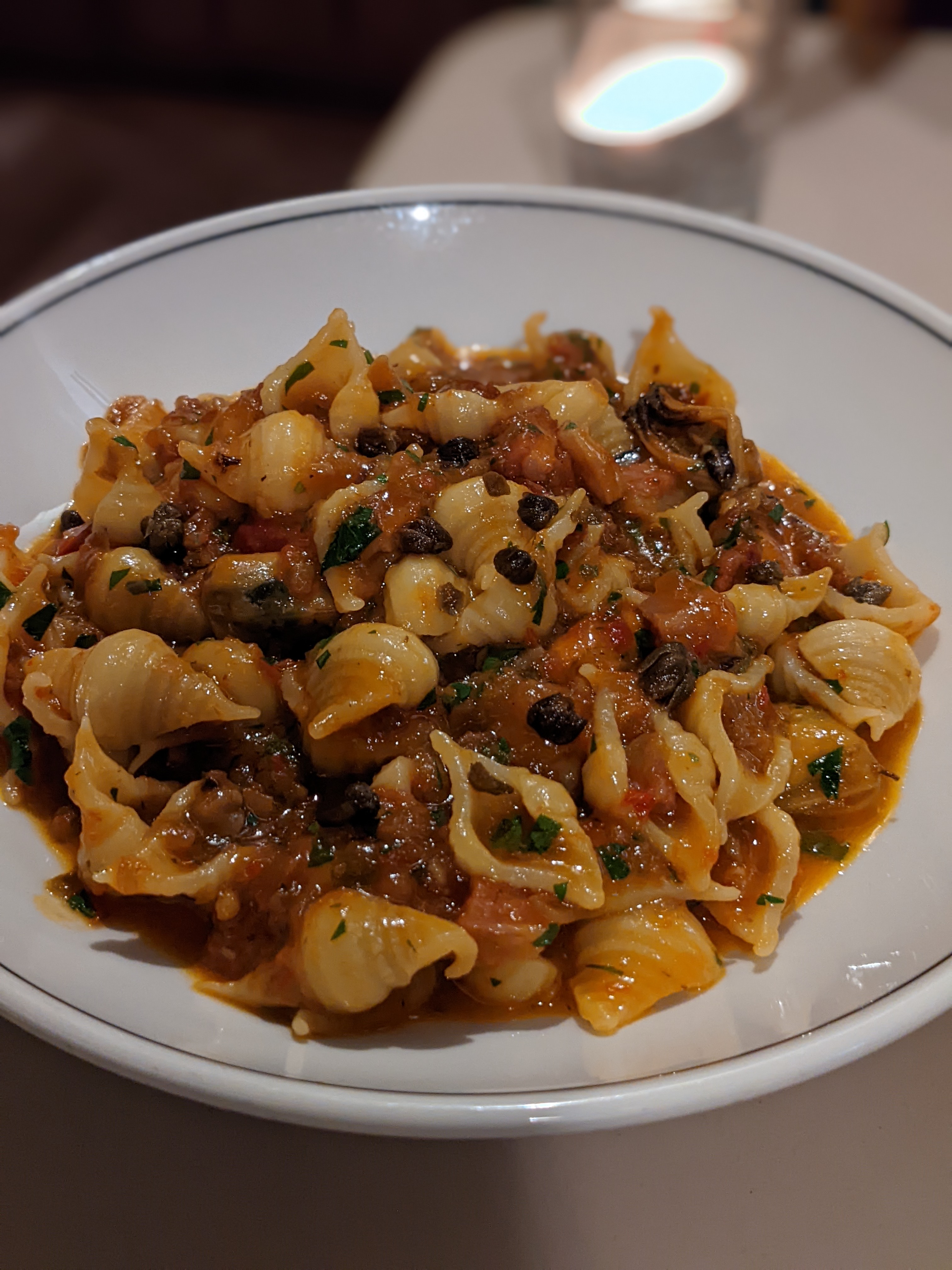 Onto the main event, for pastas we got the Spaghetti cacio e pepe and the Conchigile with mussels, speck and fermented chilli. The spaghetti was pretty good, a creamy mac-and-cheese-like pasta with a strong, peppery kick. Only feedback is it was a bit too salty likely from the cheese but the generous amount of pepper helped to balance it. Spaghetti was cooked well, al dente for most but I could have had it even softer. Not a huge serving size but good for sharing.