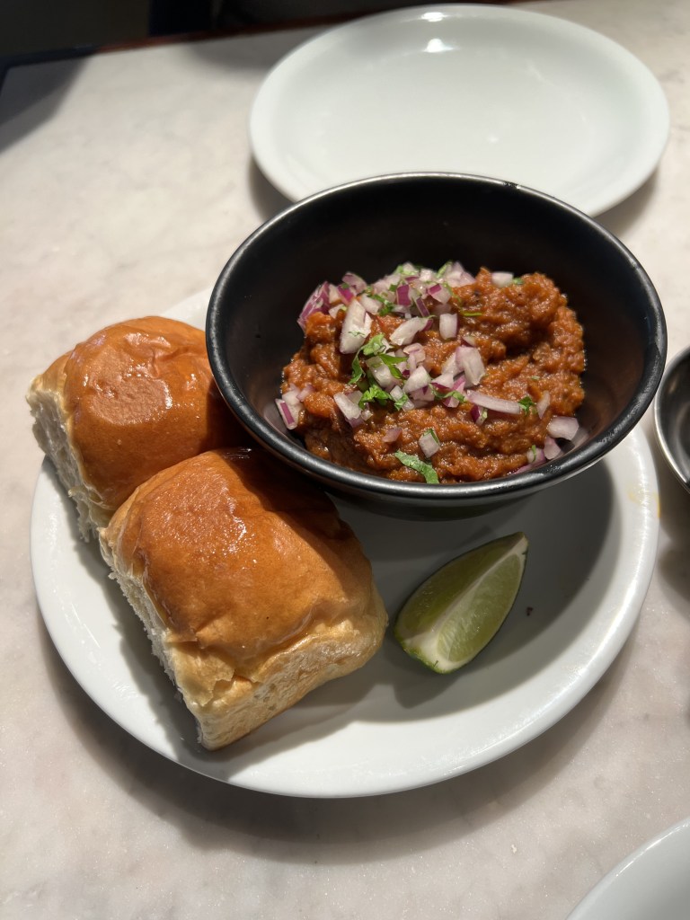 On a different day we also sampled the breakfast menu at Dishoom, which had been recommended to us. To start off we ordered the bun maska, a soft buttered bun with the signature hot chai at Dishoom. The chai was rich, spicy and honestly unlike any Chai that I have ever had before. Definitely a must-order from the Dishoom menu.