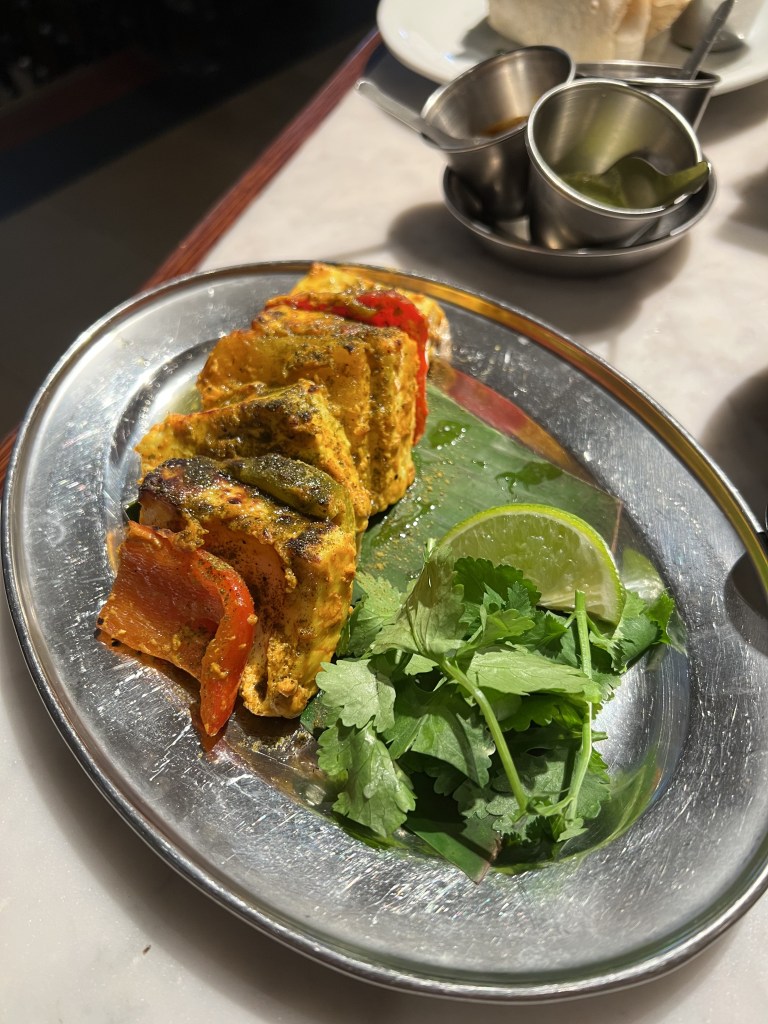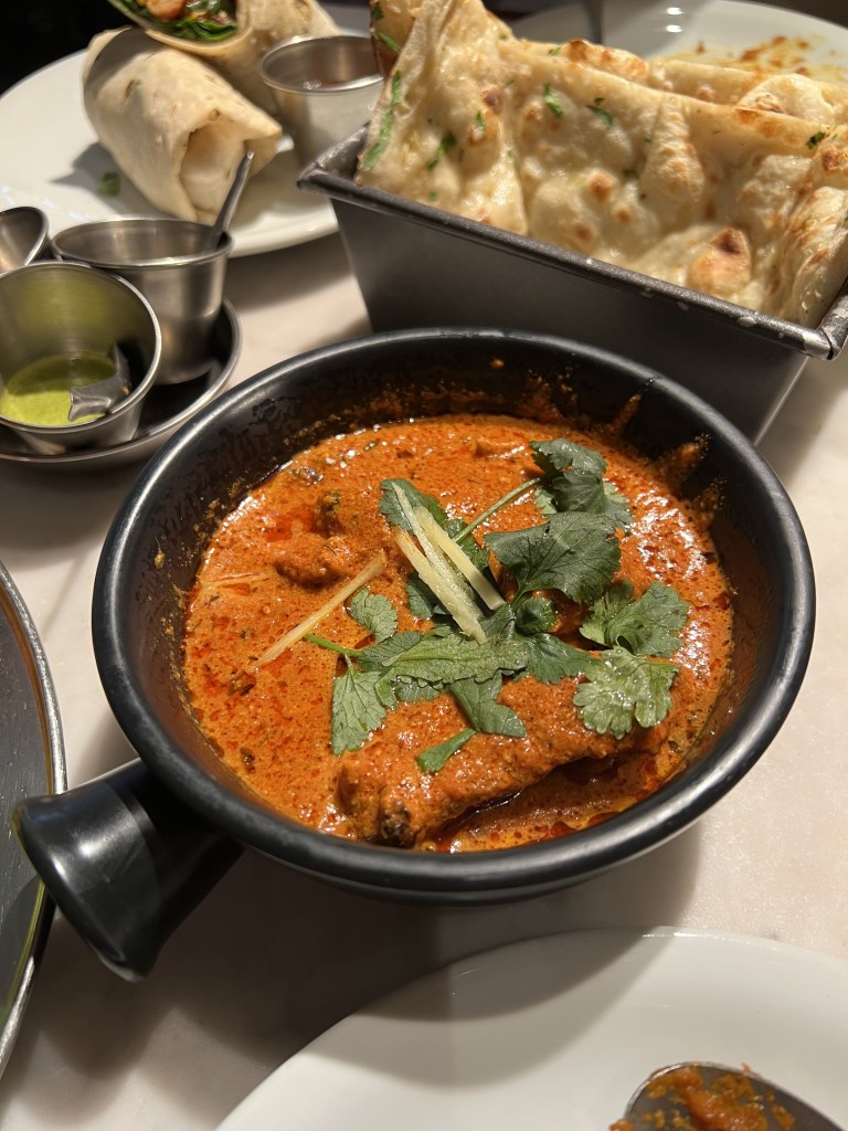 For entrees we ordered the pau bhaji which was mashed veggies in a curry paste served with two warm buttered buns. The red onion and lime cut through the rich mashed curried veggies. It was a touch too salty but still very delicious. The Dishroom tikka roll was a modern, western take using their chicken tikka. The mix of herbs was refreshing but the chicken was quite spicy for my non spicy tolerant tastebuds. It was served with a sweet tomato sauce. Whilst this was good I don’t think I would reorder this again and focus on some of the other more traditional dishes on offer.
