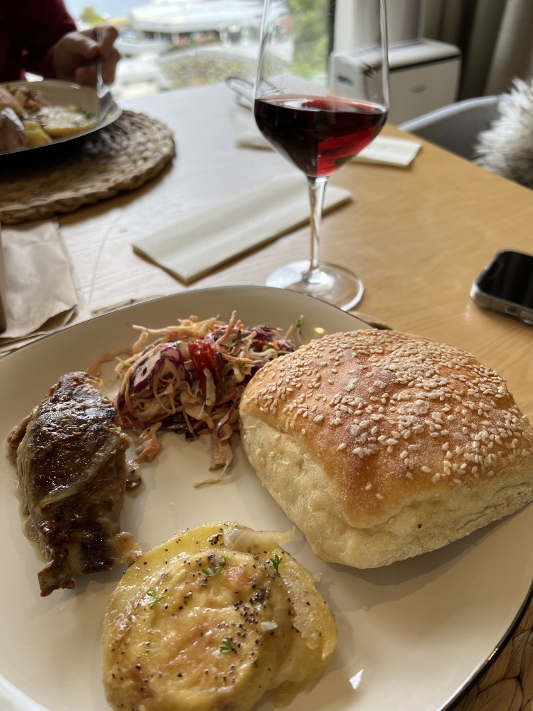 On Day 3 we headed to the other side of Queenstown to Jack’s Point Golf Course and Restaurant. It was in a lovely setting, nestled behind some hills and leading down to a large lake. Note: please book ahead for the restaurant otherwise there is a takeout and seating area as well with a similar menu. Here we ordered their wagyu burger (NZ$27), the Bluff blue cod fish and chips (NZ$29) and the blue cod tacos (NZ$22). The burger was delicious, cooked over coals so had a lovely smoky flavour. The fish and chips had a nice batter, bit on the expensive side, but the fish was high quality and the serving was fairly large. The tacos had the same type of fish but I found the blue corn tortillas tough to eat. Overall a nice meal and setting, with a good range of wines from local wineries as well.