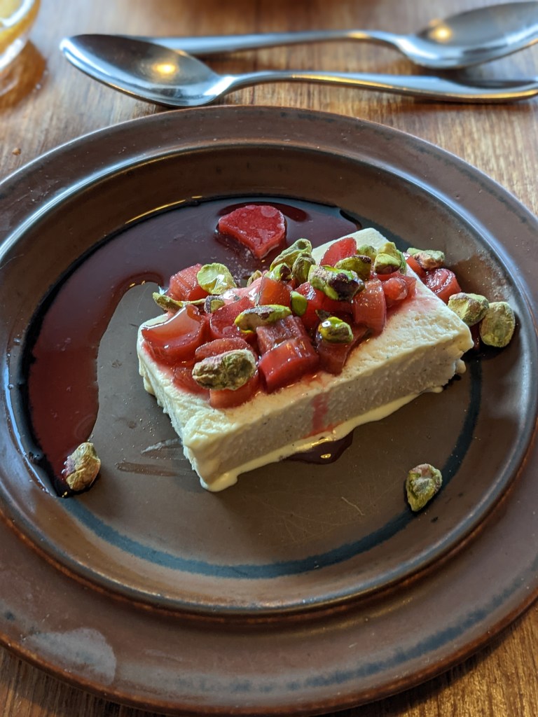 To finish off the meal, dessert was a Semi Freddo with Rhubarb and Pistachio. This was probably the highlight dish, the semifreddo was delicious and well set, going together with the rhubarb and pistachio for a sweet and salty combo. A nice way to end the meal which had some highs and some lows.