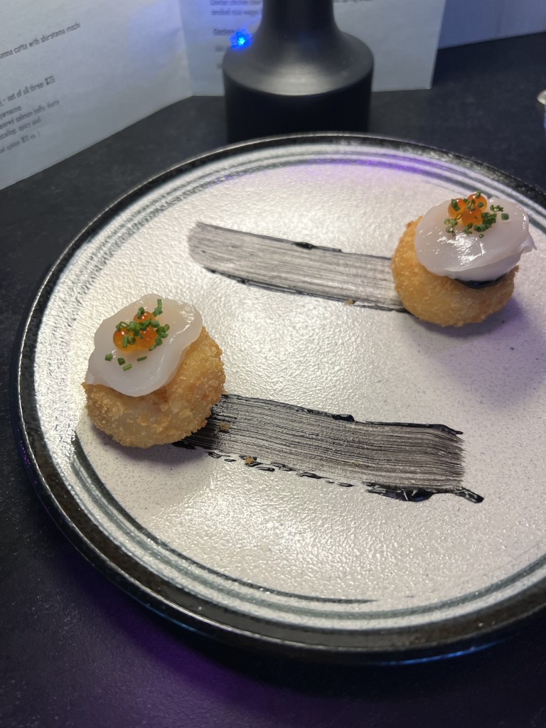 Next up we had king crab croquettes with a Hokkaido scallop on top. This was surprisingly light as a dish. I found the crab meat did not sing out in this dish, I could only taste the fried batter of the croquette. The scallop was a nice silky texture on top but again not enough flavour to balance out the batter.