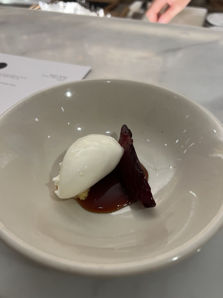 I’m not usually a dessert fan but the desserts were definitely well executed and classic dishes. The snapper eye ice cream was served with a corn cake and blood plum caramel. There was no fishy taste to the ice cream at all, only a faint vanilla/yoghurt scent that cut through the acidity of the blood plum.